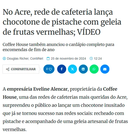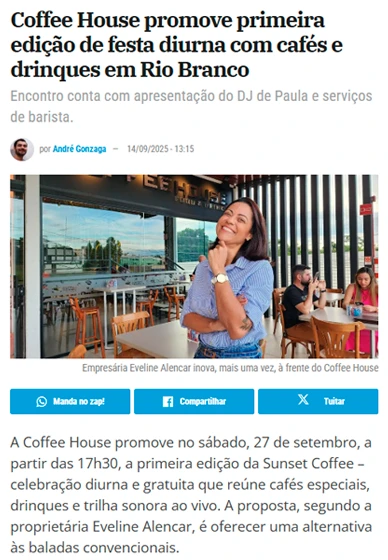A cafeteria Coffee House, idealizada por Eveline Alencar, nasceu da paixão por criar um espaço acolhedor, afetivo e confortável, que oferece muito mais do que um café: é um lugar onde cada pessoa se sente em casa.